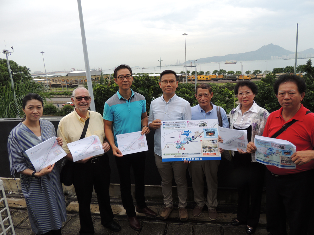 大屿山发展咨询委员会委员陈恒镔(中)、周玉堂(右三)及周转香(右二),希望政府能回应市民关注,优化大屿山规划。 大公报记者 曾敏捷摄