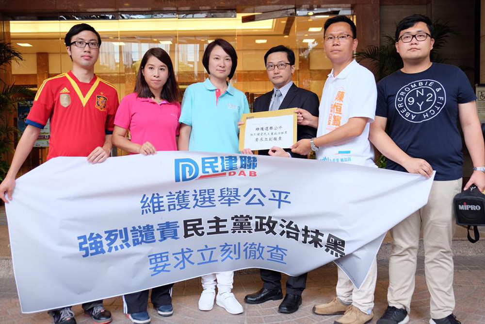 民建联昨日下午随即到选举管理委员会投诉,他们在给选管会主席冯骅的公开信中表示,民主党的指控涉及对民建联的严重抹黑,严重影响选举公正性,对民建联参选人极不公平,要求选管会立刻彻查,严肃跟进。李慧琼严厉谴责民主党的无理做法。她再三强调,民建联清楚选举规则,亦从没违反相关条文,批评民主党作出的指控完全缺乏理据,而且扭曲事实。选管会派代表到场接信。
