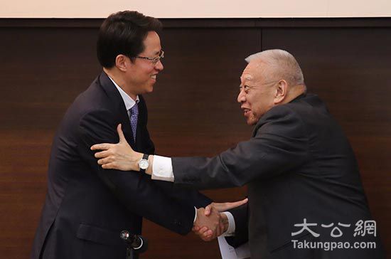图:董建华呼吁港人要认真消化张晓明的讲话。图为两人昨出席活动时握手/大公报记者何嘉骏摄