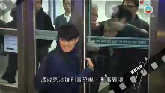 冯敬恩当日拉扯玻璃门情形/电视画面
