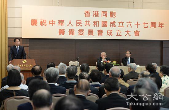 图:香港同胞庆祝国庆67周年筹委会昨举行成立大会,中联办主任张晓明出席并发表重要讲话/大公报记者林良坚摄