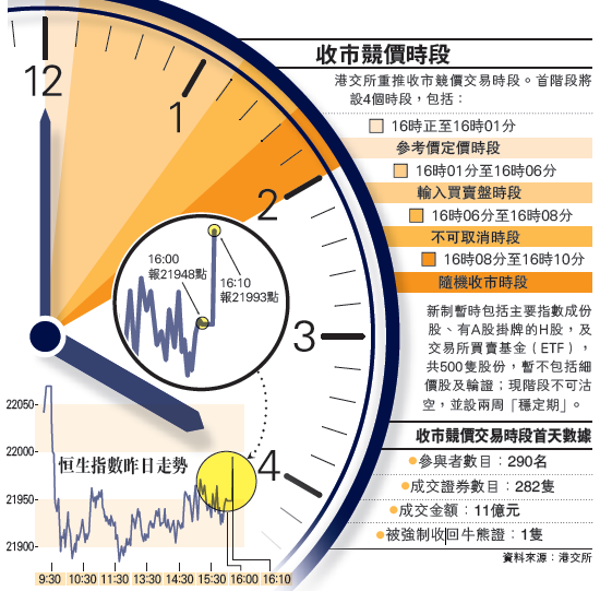 港交所市场主管李国强重申,收市竞价交易时段满足市场对证券交易能以收市价执行的需求,同时亦令港股的收市形式与其他主要交易所看齐。