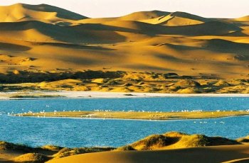走进月亮湖,不禁让人以为自己是《桃花源记》中的陶渊明,经过黄沙洗礼,映入眼帘的却是一片豁然开朗的景致。在被沙漠紧紧怀抱的绿洲内,隐藏着的便是月亮湖,湖边清风阵阵,湖水清澈,碧波荡漾。