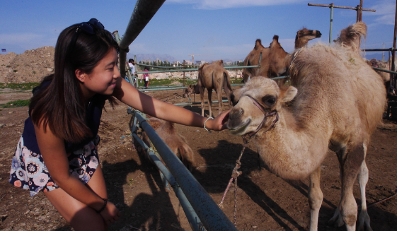 图:港生与骆驼亲密接触 大公报实习记者胡馨月摄