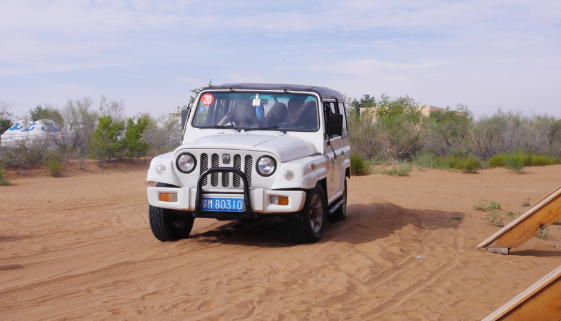 虽然月亮湖是中国距离大都市最近的沙漠探险营地,但是所谓的近,其实也并非是能轻轻松松乘坐旅游巴前往的目的地。采访团一行人在十余辆沙漠越野车上颠簸20多分钟,行进在连绵不断的沙丘上,中途经历有如过山车般的刺激感,最终才穿过漫漫黄沙,抵达沙漠绿洲。