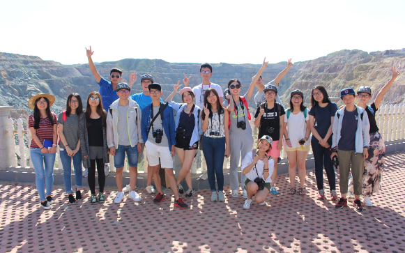图:范长江行动甘肃行传媒学子在白银公司2号露天矿场边合影\大公报实习记者苗田摄