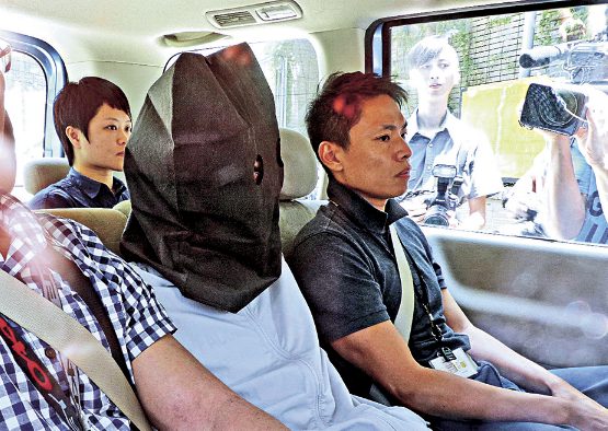 图:涉在网上留言恐吓选举主任中大学生被黑布蒙头押返警署\大公报记者麦国良摄