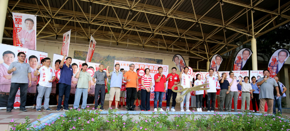 身为立法会道具王的王国兴则带同抗拉布的金铰剪出场。他指出,立法会过去四年拉布成风,导致议会被绑架,批评反对派四年来在立法会提出点人数近1500次,消耗200多个小时会议时间、浪费27亿元公帑,金额足以令一众福利金受助人出双粮,希望选民投票支持工联会,踢走拉布党。