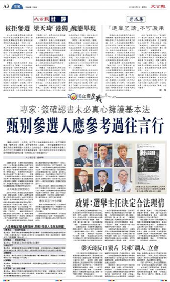 大公网8月3日讯(记者龚学鸣、陈达坚)选举主任裁定本民前梁天琦立法会选举提名无效,梁天琦随即发难,声称支持港独者在香港受到迫害,表明会继续进行司法覆核及提出选举呈请。法律界人士纷纷指出,选举主任有权参考参选人过往的言行来判断其是否具备选举资格,梁天琦提名被拒后的言论恰恰説明他虽然签署确认书,但实质上并不拥护基本法。