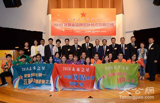 图:由香港大公文汇传媒集团和未来之星同学会主办的未来之星2016暑假交流团总启动礼暨简介会,于7月31日举行出发授旗礼\大公报记者林良坚摄