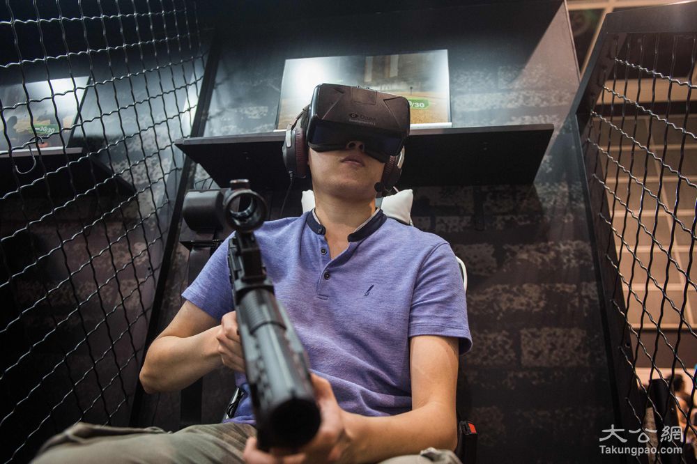 图:VR虚拟游戏大热,入场者试玩射击游戏