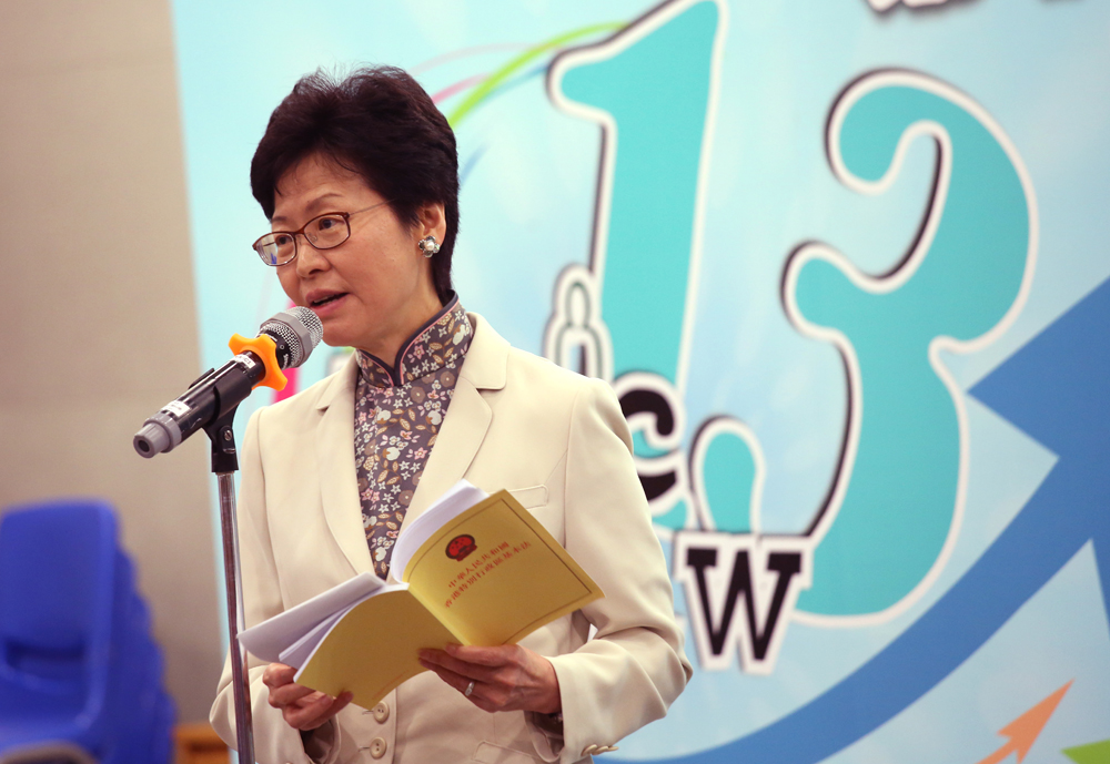 第十三届基本法大使培训计划基本法青年高峰会昨早举行,林郑月娥向来自40所不同学校的香港中学生及青年人讲解《基本法》。她在致辞时表示,《基本法》説明香港有高度自治、独立的司法权和终审权,香港司法独立机制非常稳固,司法机关不会受到行政机关、传媒和市民影响,并且独立和彰显公义。