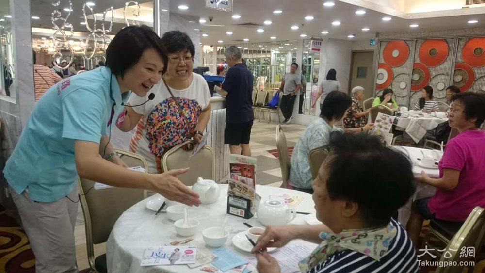 图:李慧琼密密落区,昨日到北角的茶楼争取街坊支持