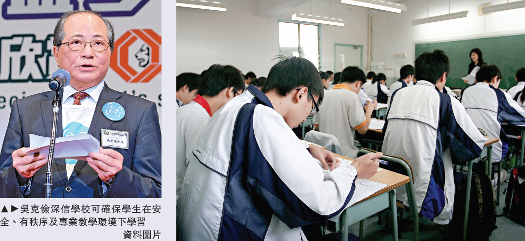 图:吴克俭深信学校可确保学生在安全、有秩序及专业教学环境下学习/资料图片
