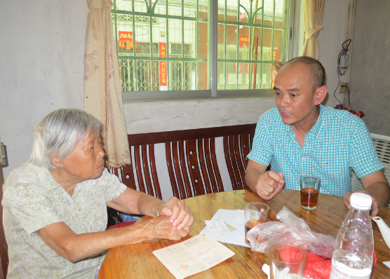 图:香港工联会广州中心主任邵建波曾多次前往探望在广东肇庆养老的黎顺意婆婆(左),享受广东计划津贴后黎婆婆的生活得到改善/受访者供图