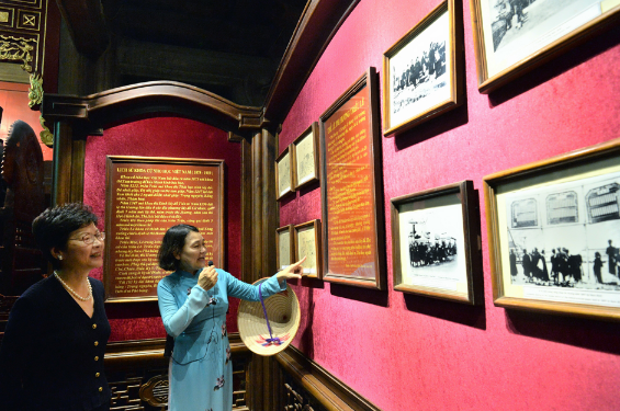 图:林郑月娥在越南河内参观文庙,了解更多越南保存历史文物建筑工作