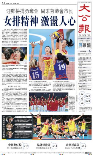 大公网8月22日讯(记者张月琪、李恒基,实习记者张乐儿、周峻峰)扣杀、拦网、扑救,紧张得让人屏息的一个个电视镜头令全城沸腾!中国女排昨日上午于里约奥运会场上,以总局数3:1击败塞尔维亚,相隔12年后再度夺金!比赛后,多个社交网站被中国女排夺金的消息洗版,逆境拼搏的女排精神激荡港人心。奥运赛事临近尾声这一大惊喜,使人兴奋莫名,意犹未尽。国家金牌运动员周六(27日)访港,据记者了解,昨日夺金的女排运动员亦已名列来港名单上,届时有望加插排球示范表演。金牌运动员三场表演活动合共约5700张门票,今起公开发售。