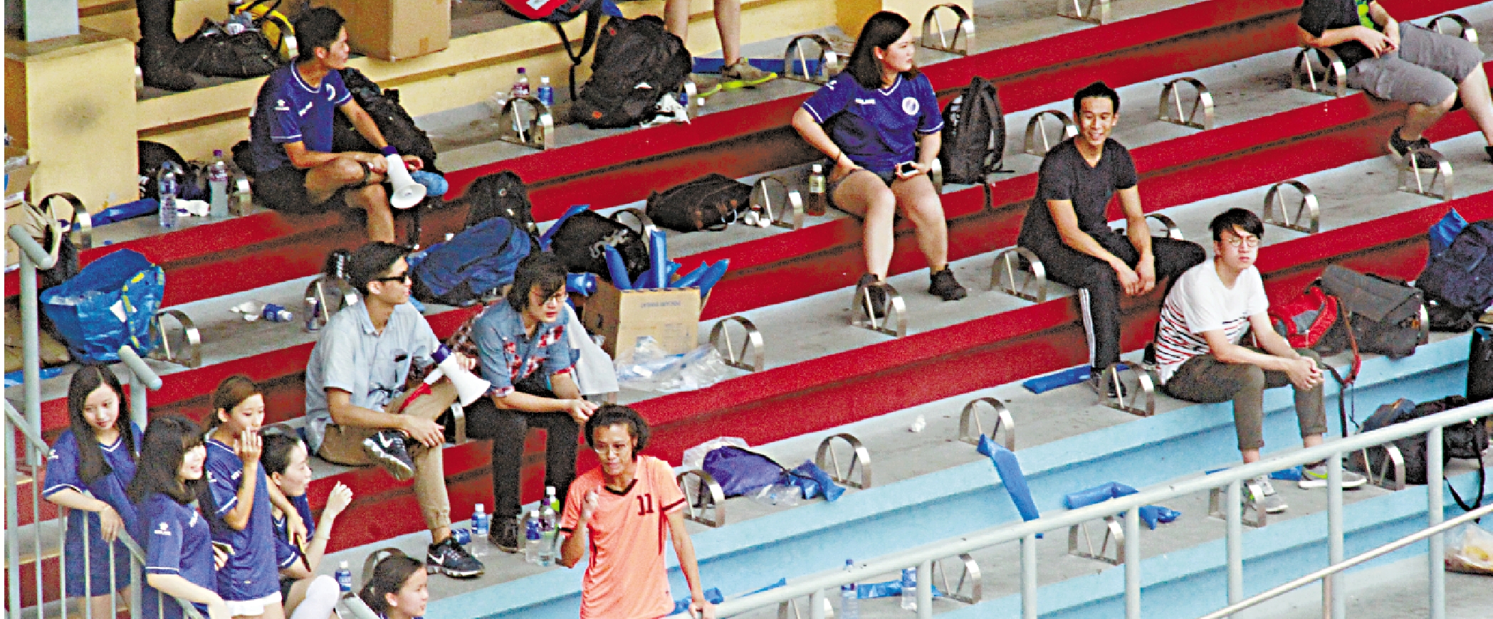 图:本土派内讧,梁天琦(右)形单影隻独坐一角