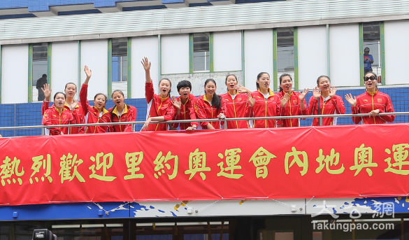 内地奥运精英代表团访港三日,昨最后一天仍马不停蹄,兵分多路与市民近距离接触,其中女排搭乘敞篷巴士巡游,街坊兴奋争相捕捉。排球示范课上,学生、球员们雀跃听讲,获勉励面对困难,相信梦想的力量,活动亦实现两地精英健儿可贵的交流互动。代表团结束访港之行,港人不仅分享了中华儿女的荣耀欢乐,同时也被精英健儿的率真、友善所融化,为他们的风采而倾倒。/大公报记者张月琪