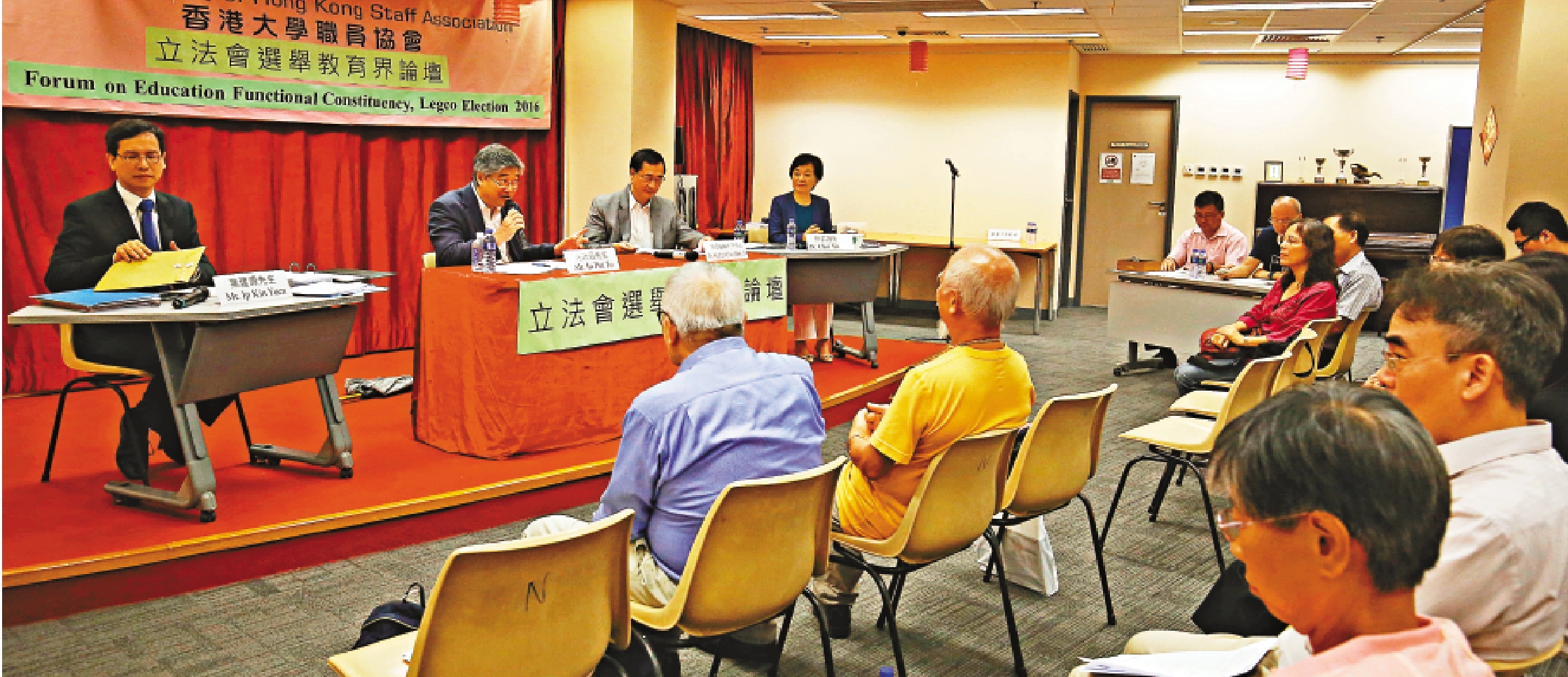 图:蔡若莲及叶建源昨出席由香港大学职员协会与高等院校教职员会联会举办的公开论坛
