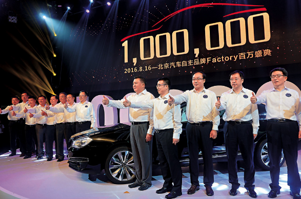 大公网9月1日讯(实习记者王芳凝)以致匠心领未来为主题的北京汽车自主品牌第100万辆车下线仪式日前在北京汽车北京分公司举行。北汽集团董事长徐和谊在仪式上表示,北汽自主品牌在五年内实现从零到百万,创下自主品牌发展历史的新记录。对于未来,他豪迈且坚定地指出,力争在2020年自主年产销80万辆,其中新能源20万辆,实现销售收入700亿元(人民币,下同),同时在自主品牌排行中进入前三名,成为具有国际竞争力的大型汽车企业。