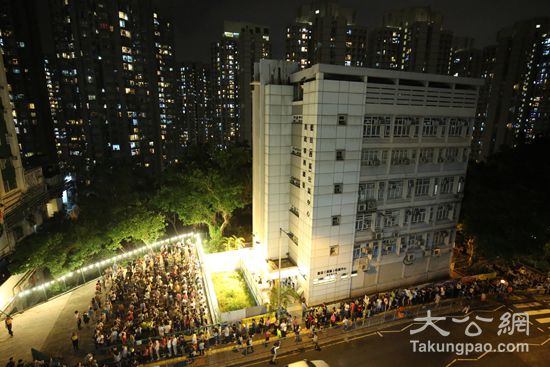 香港立法会选举投票日傍晚后多个票站外出现打蛇饼现象,排队长龙中许多人紧盯手机屏幕上的配票指示,成为本次选举中的特异风景。 大公报记者麦润田摄