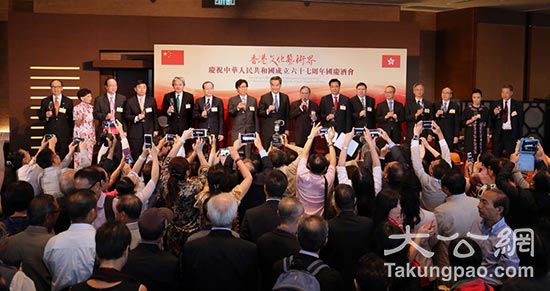 图:文化艺术界举行国庆酒会,嘉宾及文艺界代表祝酒\大公报记者麦润田摄