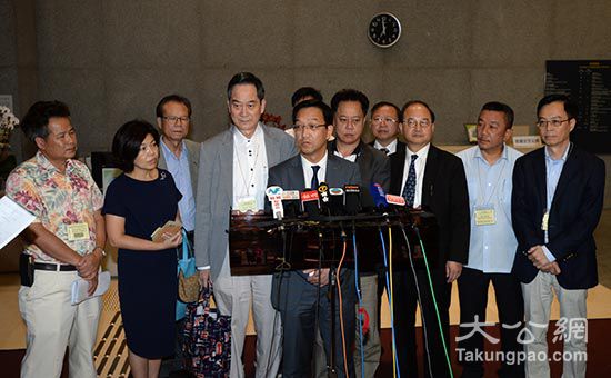 图:刘业强(最前者)表示,乡议局反对任何威吓手段,又指乡议局一直以正面手法行事/大公报记者林良坚摄