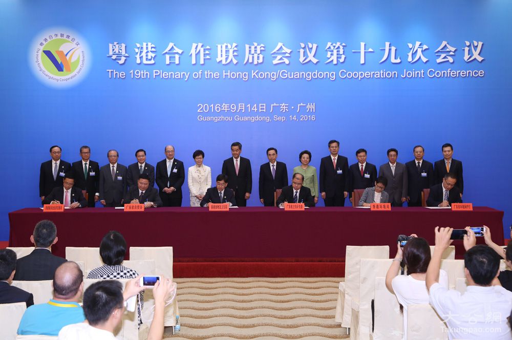 第十九次粤港联席会议由行政长官梁振英和广东省省长朱小丹共同主持。会上,政务司司长林郑月娥、广东省副省长何忠友及双方其他官员,分别汇报了粤港合作联席会议第十八次会议以来的合作进度及成果,并确定未来一年携手参与一带一路建设、青年交流、旅游、环保、教育等多个领域合作的工作重点,粤港双方会后还签署了包括《粤港携手参与国家一带一路建设合作意向书》在内的九份合作协议,在未来一年粤港两地会继续携手合作,做好各个范畴的工作。