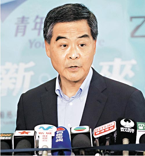 梁振英昨日出席论坛活动时,回应有关横洲公屋发展项目的问题/刘国权摄