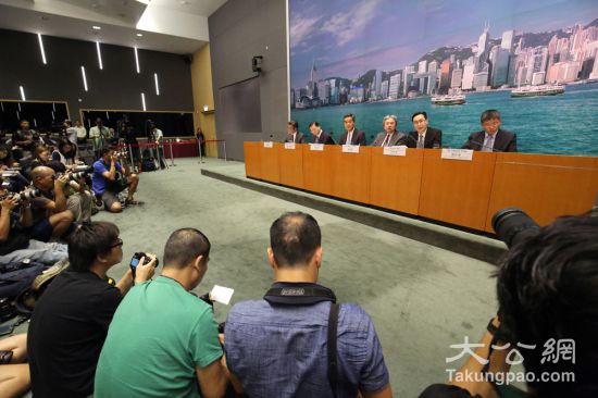 行政长官梁振英联同财政司司长曾俊华及运输及房屋局局长张炳良等官员,昨日下午就横洲发展计划举行记者会。大公报记者麦润田摄
