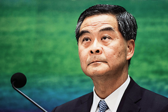 梁振英感谢政府同事全力觅地建屋,更一度哽咽: 我哋做出嚟嘅成绩,粒粒皆辛苦。法新社