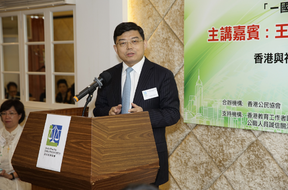 图:王振民昨日出席亚太法律协会举办的‘一国两制’再思午餐会,并发表演讲\大公报记者李淇摄