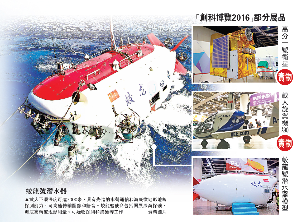 为提高港人对国家领先科技的认识,团结香港基金今日起至十月一日举办创科博览2016,博览分为八大展区,占地10万平方尺,展出50项首次在本港亮相的国家尖端科技。