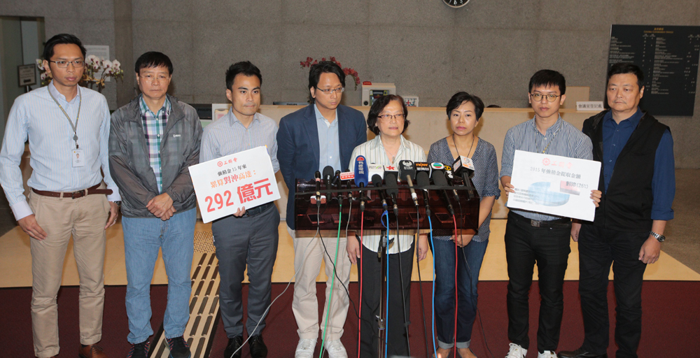 图:工联会昨就强积金对沖问题与行政长官梁振英会面。工联会会长林淑仪(右四)会面后称,特首强调会考虑一切可行方法,找出各方接受的解决方案/大公报记者林少权摄