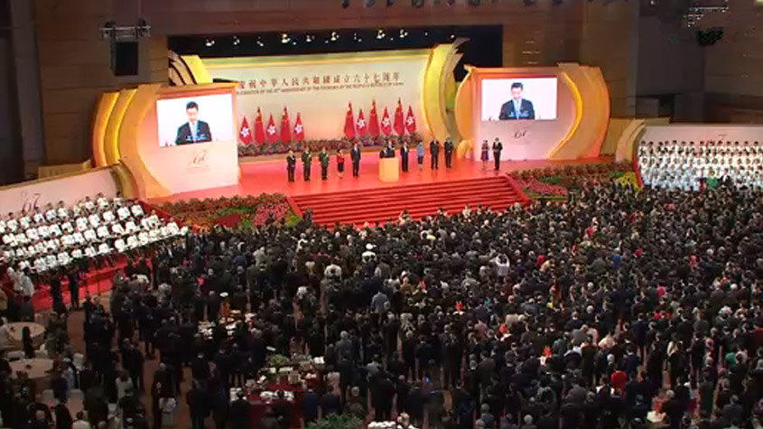 今日是中华人民共和国成立67周年国庆。我代表香港特别行政区政府,欢迎各位嘉宾莅临国庆酒会。