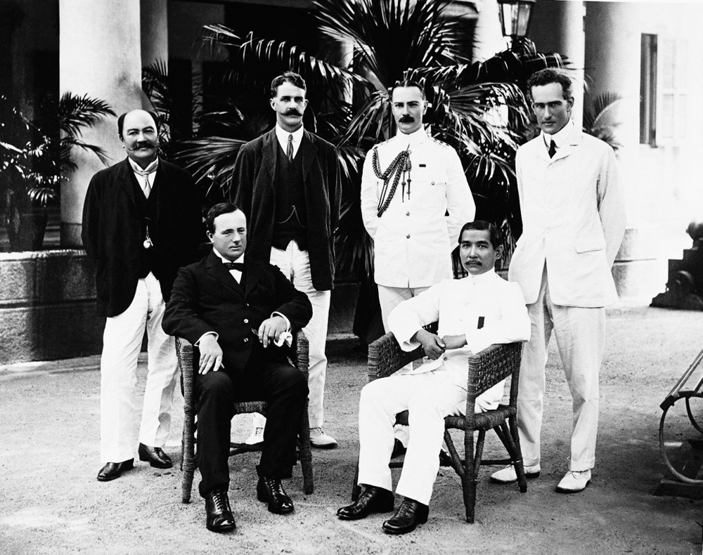 图:一九一二年五月二十日,孙中山(前右)访港期间,在总督府与署理港督施勋(前左)进行非官方的私人会谈/香港歷史博物馆