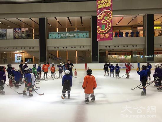 香港小童在深圳冰球会打球/何花摄