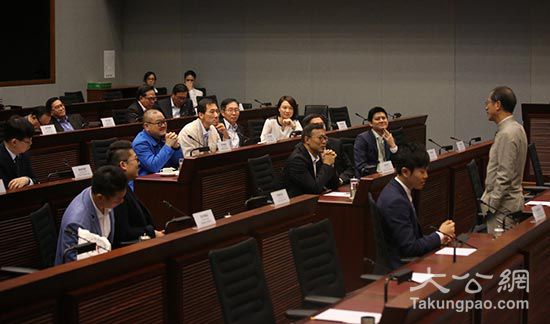 曾钰成(右)昨与逾20名新一届立法会议员见面,分享议会工作经验/大公报记者黄洋港摄