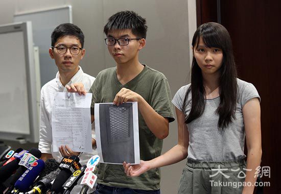 图:黄之锋(中)与香港众志成员昨晚召开记者会,交代被禁入境泰国经过\大公报记者黄洋港摄
