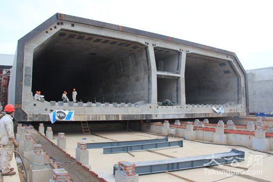 港珠澳大桥每节沉管长180米左右,造价超1亿元人民币,图为沉管预制现场。