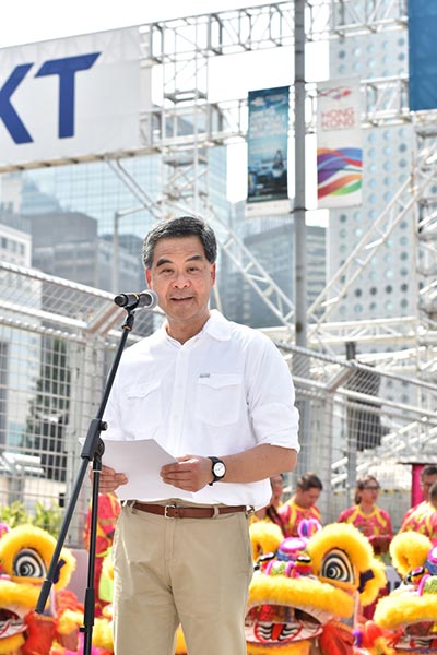 梁振英在赛事开幕仪式致辞时表示,三年多前香港汽车会会长余锦基提议在香港举办Formula E大赛,经过三年多努力,终于幻想、理想、梦想成真。他称,香港是好客之都,很高兴看见赛事能吸引四方八面的游客,而今次比赛的车辆以电力驱动,是寓环保于体育、娱乐的活动。