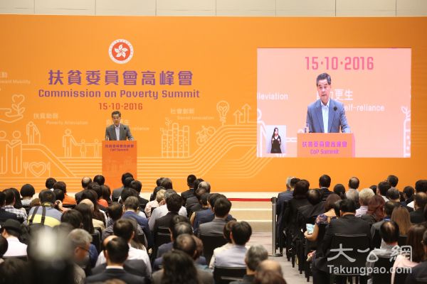 大公网10月15日讯(记者张琪)本届政府任内今早举行最后一次扶贫高峰会,在会上公布《2015年香港贫穷情况报告》。行政长官梁振英致辞时表示,本届政府破天荒制定首条官方贫穷线,并强调本届政府优先处理长者及在职贫穷问题,重视青年人向上流动,亦重视少数族裔融合。