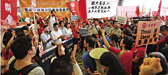 工联会谴责梁游宣誓时辱国。大公报记者何嘉骏摄