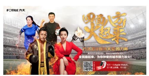 双11,是中国电商最火的节日,历经8年,销售数字不断被刷新的同时人们买买买的热情越燃越火,俨然已经从一个电商促销节日变成一个全民狂欢的大日子。方太作为高端厨电领导者,秉承因爱伟大的品牌理念,致力于让家的感觉很好,于是在这个火热的电商节日里,发起了“四面八方火起来,方太双十一城市火炬接力赛”的活动。其将在全国三十二城开启火炬传递活动,并邀请邹市明、陶虹、浦玮、刘越四位体坛及影视明星作为四线队长,将方太电商双11的火热氛围及家的温暖火种传递至全国各地,真心实意做一场全民参与的体验性火炬接力活动。