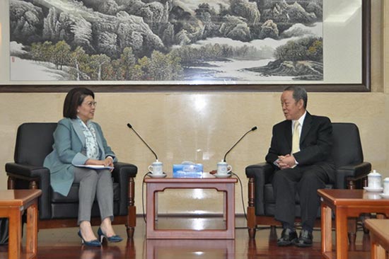 图:港澳办主任王光亚(右)昨日会见谭允芝率领的香港大律师公会访京团