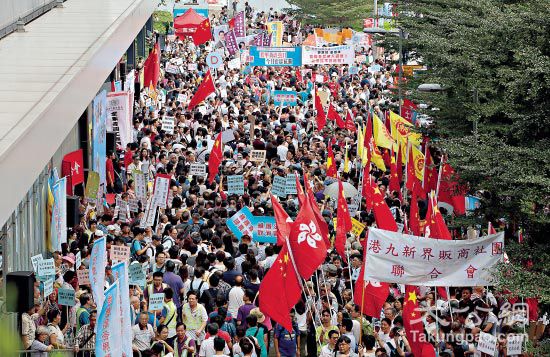 今次反辱华、反港独集会聚集了过万爱国爱港市民支持,表达对梁、游的愤怒。大公报记者摄