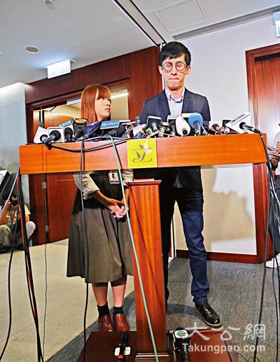在宣誓时播独辱华的青年新政梁颂恒、游蕙祯昨日见记者仍死不悔改