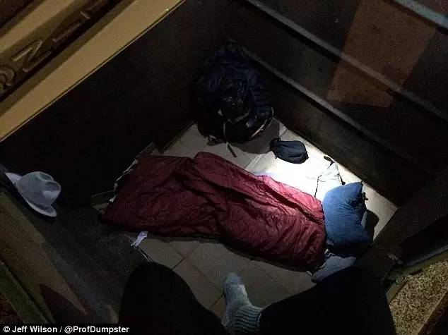 地上只铺了几张纸板,放了一个睡袋,一个包,简单几件行李。“第一天爬出垃圾箱的时候,我哭了。”Jeff回忆说,昼夜温差实在太大了,晚上冻得直哆嗦,而且垃圾箱有味道,四周不美观,存储空间又很小,实在很苦逼。