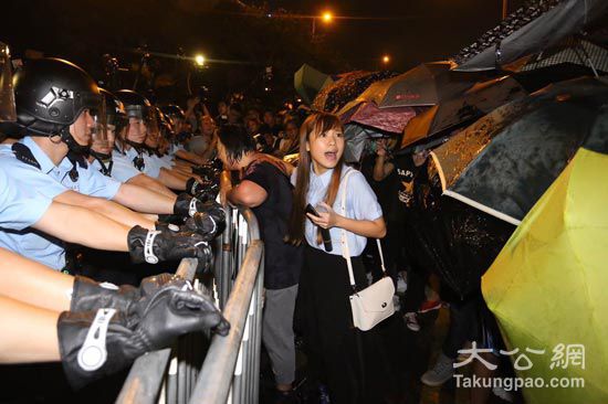 游蕙祯昨日丝毫无损穿梭示威现场。大公报记者何嘉骏摄